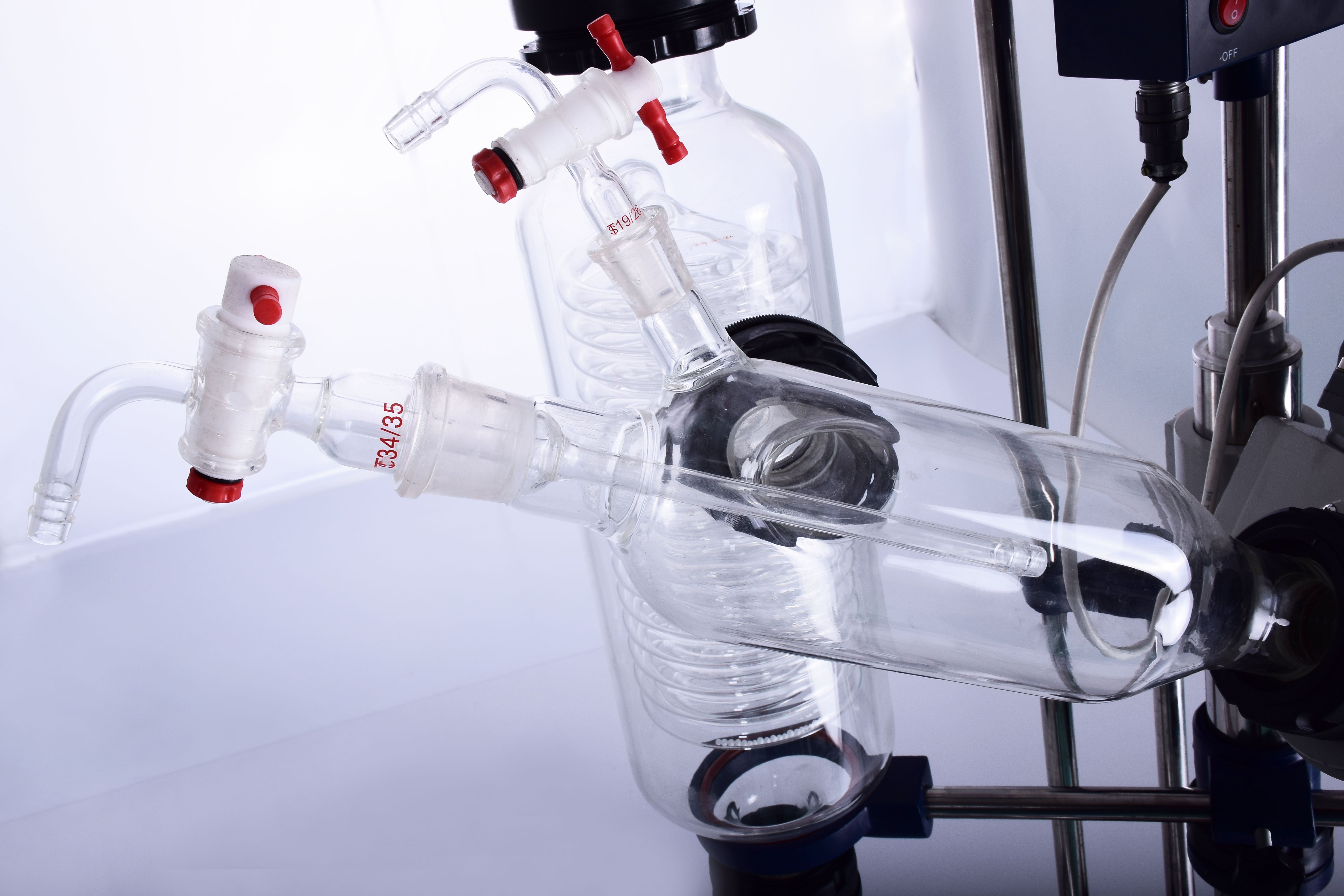 4、旋轉(zhuǎn)軸采用高硼硅玻璃,連接部位采用氟橡膠骨架油封,密封度高效果良好;